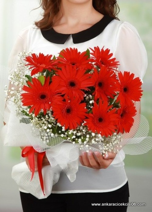 11 Adet Kırmızı Gelbera ile hazırlanmış şık bir buket