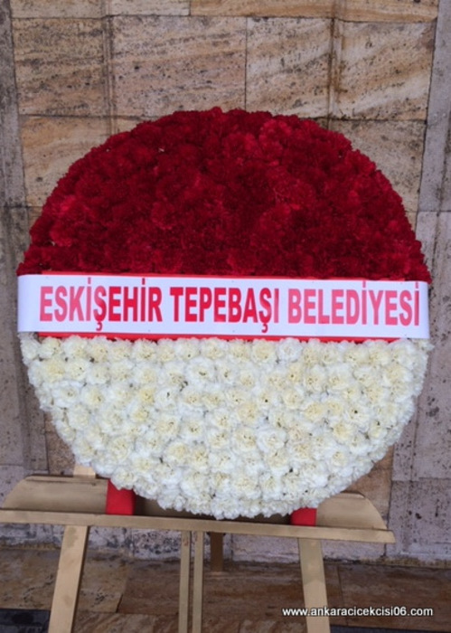 Anıtkabir mozole çelenk,anıtkabir komutanlığının istediği standartlarda, kırmızı ve beyaz karanfillerden hazırlanan 80x80 ebatlarında özel bir çelenk modelidir.