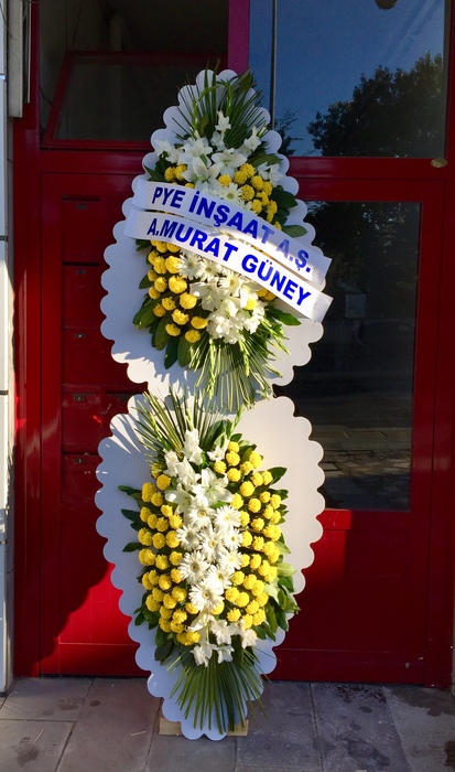 Sarı beyaz çiçeklerden hazırlanmış gösterişli açılış ve düğün için çelenk sizi en iyi şekilde temsil edecektir.